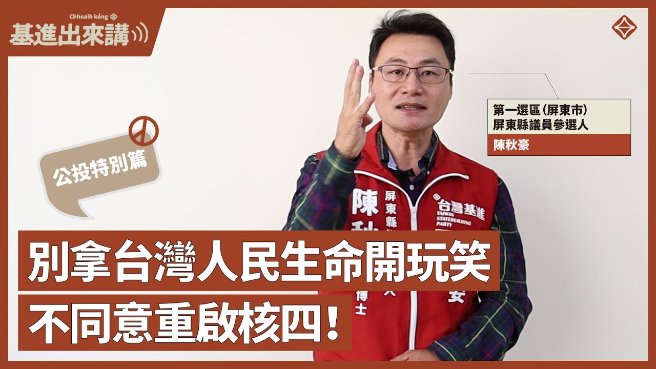 【基進出來講】公投特別篇|陳秋豪主講|別拿台灣人民生命開玩笑|不同意重啟核四!|四個不同意,台灣進國際